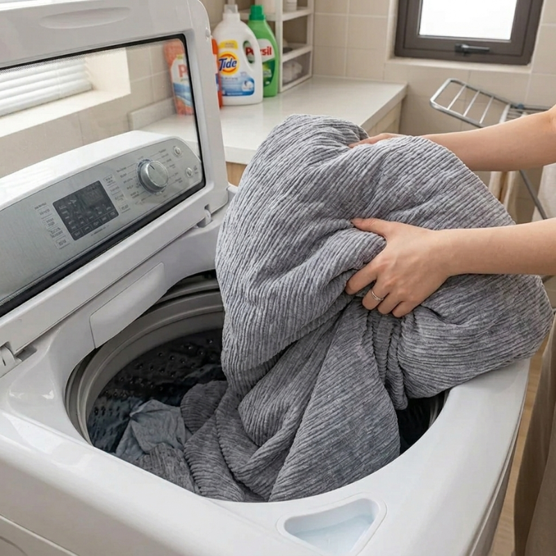 When it gets too dirty, just toss it in the washer. It comes out clean, soft, and ready to go again — no shrinking, no fading.