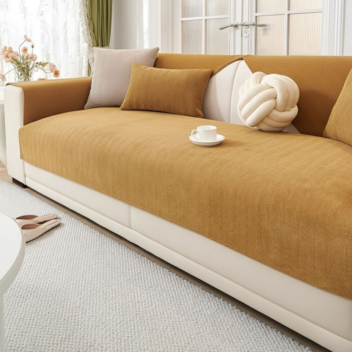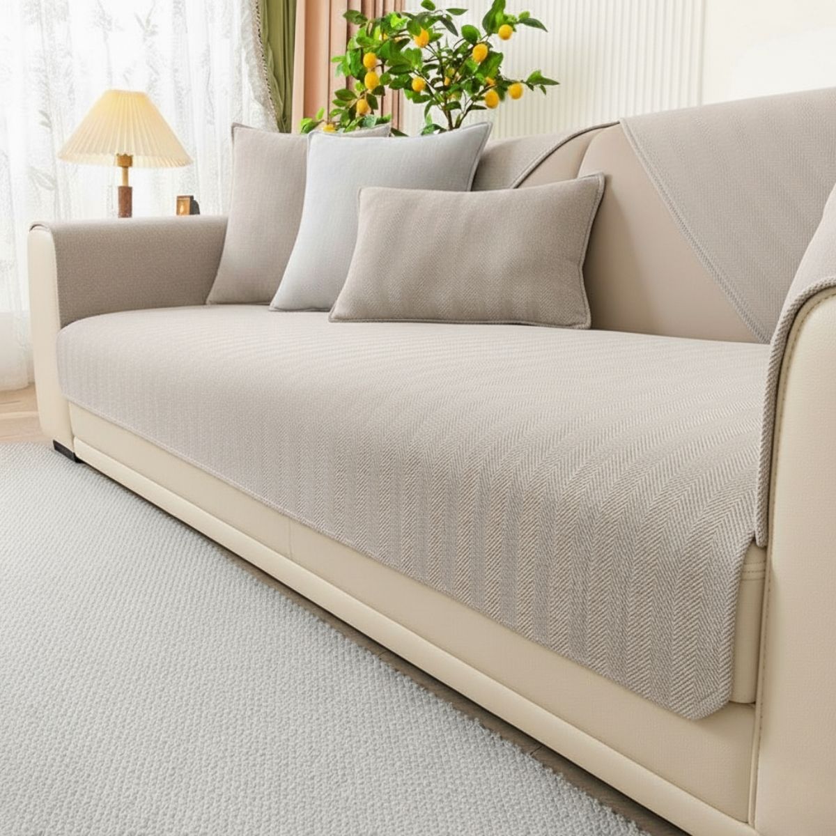 We’ve heard you — leather can be tricky. That’s why our Herringbone Chenille Cover has a non-slip backing with hundreds of soft silicone dots and a weighty weave that hugs your sofa in place. Even on smooth leather, it stays put far better than thin fabric covers — no slipping, no constant tucking. Just sit, relax, and let it do its job.