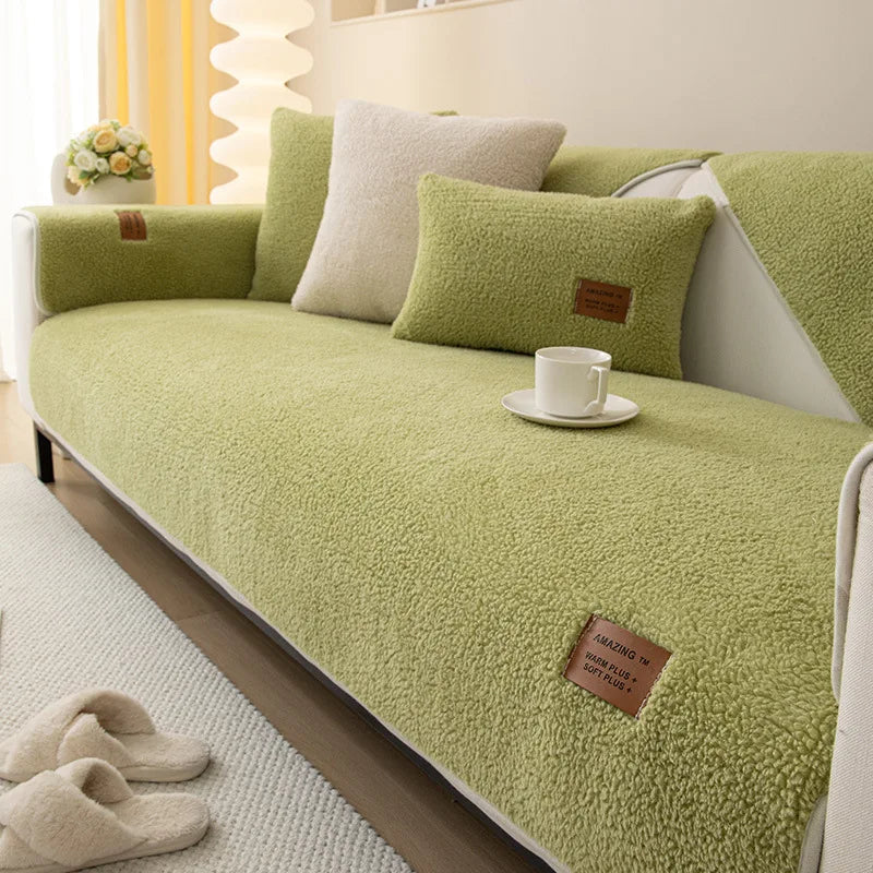 Ultra-Soft Sherpa Fleece Warmth Made from thick 500gsm sherpa fleece with a soft brushed surface and wool-blend feel, this cover delivers cozy, enveloping warmth that’s perfect for fall and winter evenings. It’s fluffy, gentle on skin, and gives your sofa that “snuggle in and stay” comfort.