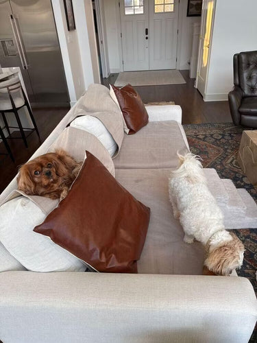 Yes — and that’s one of the reasons people love them. The dense chenille weave naturally grips leather better than smooth fabrics. Combined with our SecureFit straps, foam anchors, and anti-slip backing, the cover stays beautifully in place, even when pets jump or kids play.